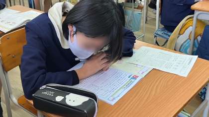 算数の学習で、計算ノートに取り組んでいました。出来たら前に出します。できた計算ノートがどんどん積まれていますが、焦らず丁寧に取り組みましょう!