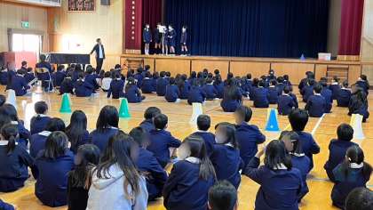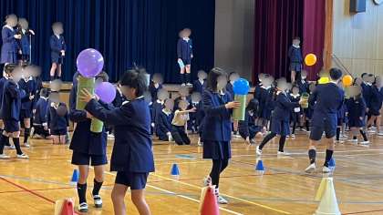 今日の児童集会は、縦割り班に分かれて体育館で風船運びゲームをしました。高学年でも中々上手く運べず苦労していましたが、みんな楽しそうでした。