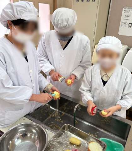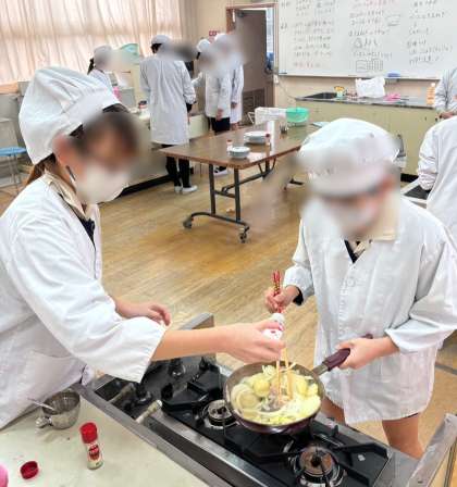 家庭科の調理実習をしていました。ジャーマンポテトを作りました。上手くできて、美味しくいただいたようです。