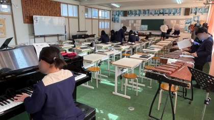 音楽の学習です。合奏に向けての個人練習をしていました。
