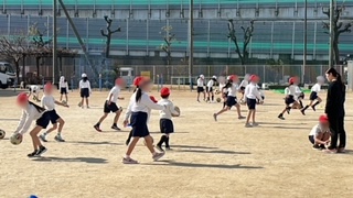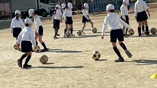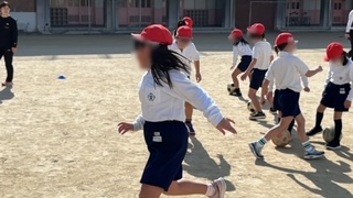 体を巧みに動かす運動です。ボールを足でうまく操作したり転がるボールにタイミングを合わせて上にお尻を乗せたりしていました。