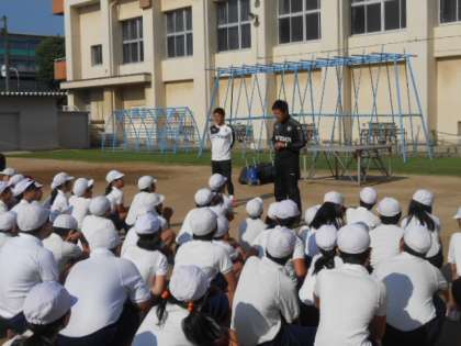 セレッソ大阪の方に来ていただきサッカーの授業を受けました。