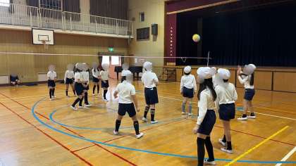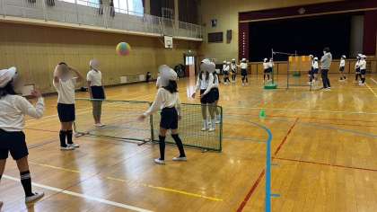 体育の学習でソフトバレーボールをしていました。なかなかラリーが続きませんが頑張っていました。