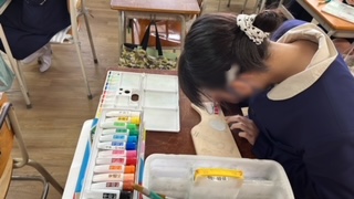 卒業制作に取り掛かっていました。構図を考えている子、色付けしている子、彩色や構図について先生と相談している子など進度は様々ですが、楽しそうに進んでいました。