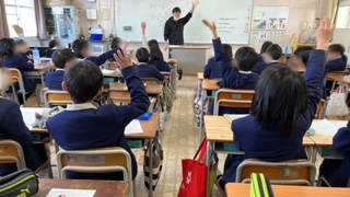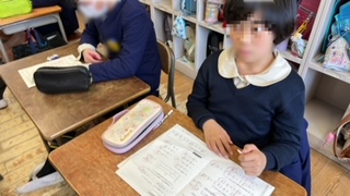 算数プリントの答え合わせをしていました。プリントには少し難しい発展問題もあったようで、「発展問題に取り組んだ人」と先生が尋ねたらたくさんの人が挙手していました。