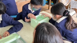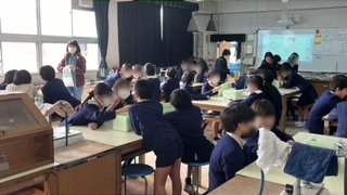 理科の学習です。「ものの溶け方」の単元で、液体に溶けた物を取り出すにはどうしたらいいかを考えていました。この時間は、食塩やミョウバンを溶かした水溶液を冷やすと食塩やミョウバンは取り出せるかを実験していました。
