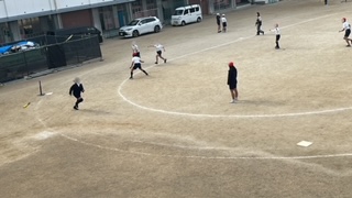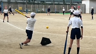 ティーボールのゲームをしていました。白熱して楽しそうでした。