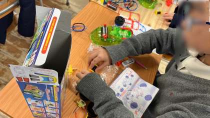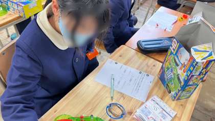 この前作った理科の電磁石実験キットを使って電磁石の性質を調べていました。わかったことは、プリントに書き込んでいきます。