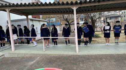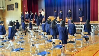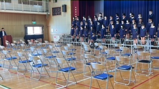 体育館での卒業式の練習が始まっています。今日は、入場や呼びかけ場所への移動などを練習していました。静かにすばやく移動することを目標に頑張っていました。