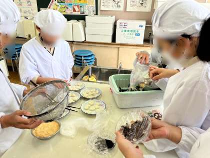 団子しっかりこねてから茹でていい固さの白玉団子ができました。きな粉とあんこを用意して盛り付けます。とても美味しそうですね。