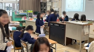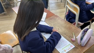 国語の学習で、漢字ドリルで今まで習った漢字の復習をしていました。できたら先生に◯付けをしてもらいます。