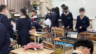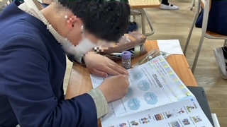 英語学習の時間でした。一年間を振り返って感想やら自分ができたことなどをプリントにまとめていました。出来たら先生に提出していました。