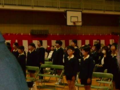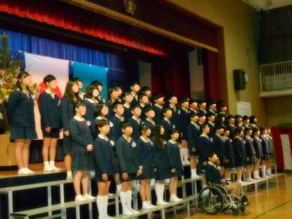 在校生とのお別れの言葉です。在校生との最後の交流です、しっかりと大きな声で思いを送ることができました。在校生もそれにこたえて大きな声でエールを送っていました。