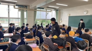 昨日卒業した卒業生で春日出中に進学する子たちが中学校へ行ってオリエンテーションを受けました。最初に校長先生の話を聞いてから各教室に分かれて担当の先生から説明を受けたり、組み分けテストを受けたりしました。