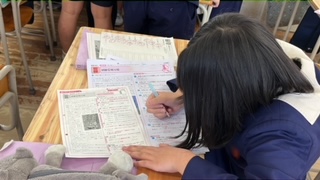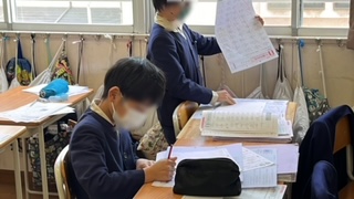 テストがたくさん返ってきたようです。早速、やり直しをしていました。