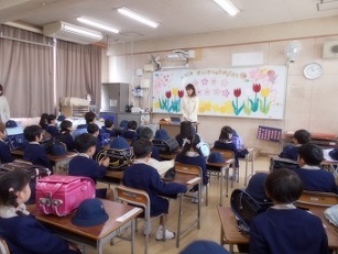 校長先生からの「おめでとう」の言葉に、「ありがとうございました!」と元気よく答えていました。また、担当の先生の発表では、一生懸命、先生の名前を覚えようとしている姿も見られました。そして、地域の方やPTAの皆さん、上級生が協力して作ったお守りをプレゼントされ、大事そうに、嬉しそうに見つめていました。お礼の言葉もきちんと言うことができました。