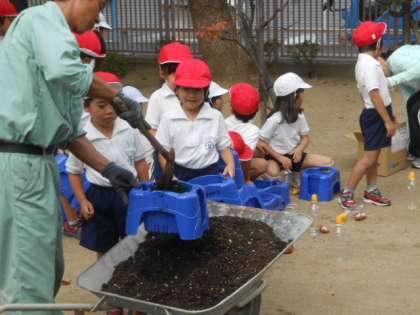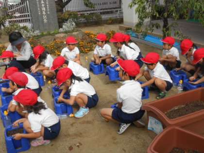 管理作業員さんに土を入れていただきチューリップの球根を植えました。