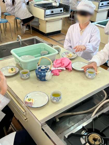 グループの人数分のお茶をいれる時は、少しずつ、順番にいれていくと濃さが均等になることを知り、早速、試していました。