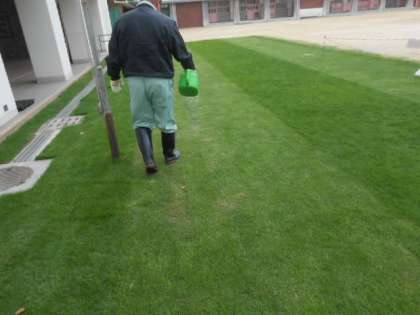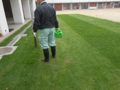 刈りすぎたところに・・・・ハイボネックスをまきました。