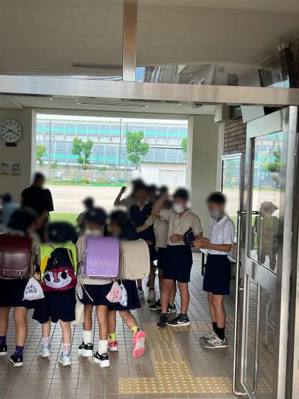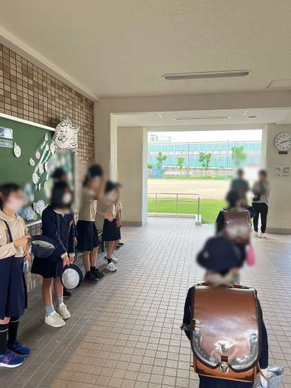 迎えられた子どもたちも、いつもより元気なあいさつを返していました。