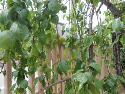 もうすぐ梅雨の時期になりますが、梅香小学校のウメの木に実が成っています。