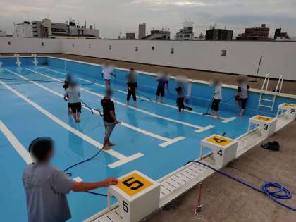 夏季休業中のプール開放に向けて、教職員で清掃をしました。