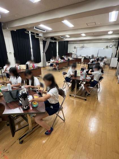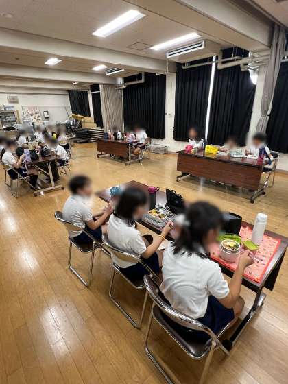 台風10号の影響で自然体験学習が実施できなかったため、この2日間給食はなく、お弁当を食べました。