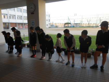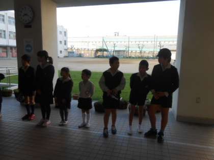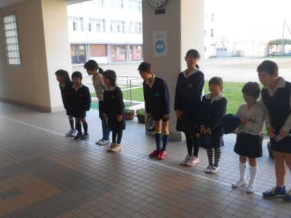 今日は2Bの子どもたちが玄関前であいさつしています。