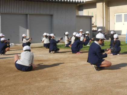 太陽の光を使って実験です。