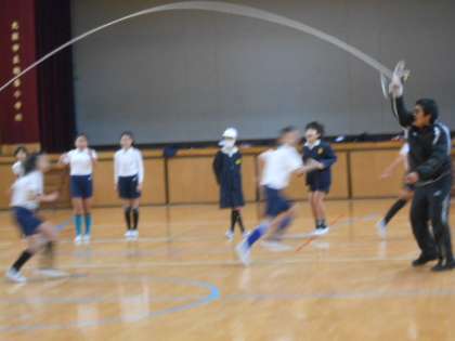 6年生はランキング上位にいけるように体育の時間も大縄跳びの練習です。