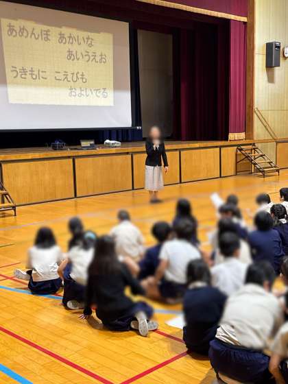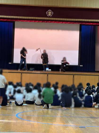 12月5日の劇鑑賞会にむけて、劇団の方から劇の内容の説明がありました。また、発声練習も行いました。