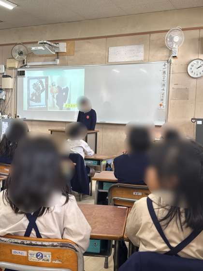 作品展も同時開催だったため、1、2年では、作品展に展示した作品について、児童それぞれが、がんばったところや気に入っているところなどについて発表しました。