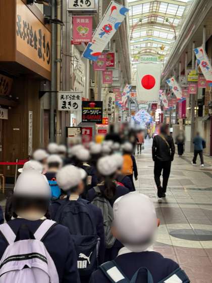 天満駅を降りた後は商店街の様子を見学しながら移動しました。