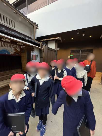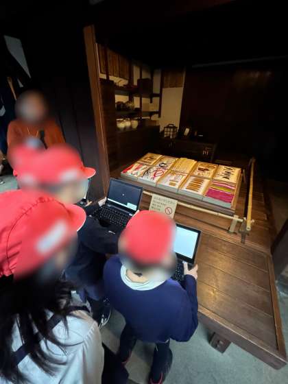 呉服屋、薬屋など、当時の様子を再現したものを熱心に見学していました。