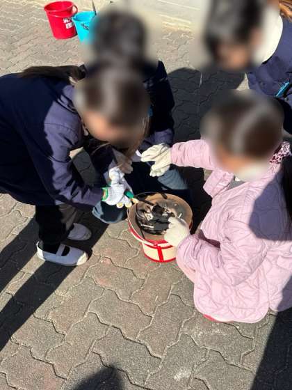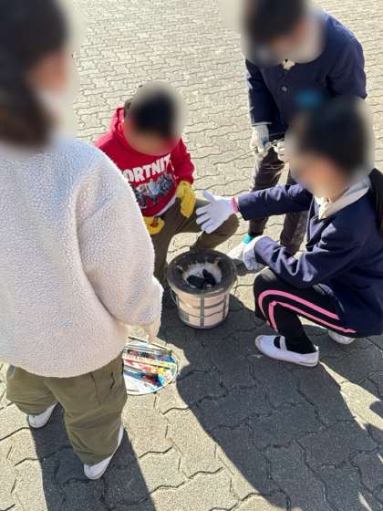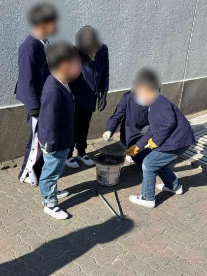 今日は、七輪を使ってお餅を焼く体験学習をしました。