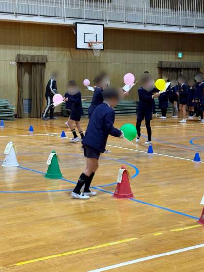 風船を体でおさえたり、ポンポンと上に飛ばしながら歩くのはルール違反なのですが、思うように前に進むことができず、思いがけず風船が高く上がってしまう児童も多く見られました。