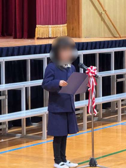5年生代表の児童に修了証が渡された後、1年、5年の代表児童が、一年間の思い出についての作文を読みました。