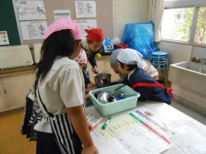 ラーメンの実習がはじまりました。子どもたちはやる気満々です。