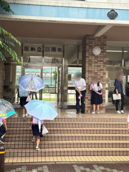 今日は、あいにくの雨でしたが、あいさつ隊の皆さんが大きな声であいさつをしてくれたので、元気が湧いてきました。