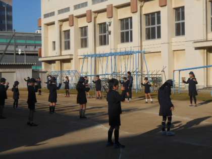 児童朝会で欠かさず行われているラジオ体操。