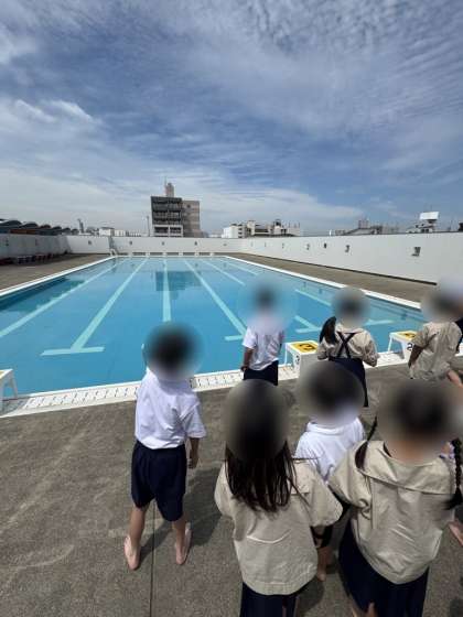 掃除も完了し、きれいな水が入ったプールを見て、来週が楽しみになったようです。