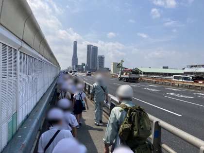 国道からは、増水時に街を守る水門や堤防なども見学しました。