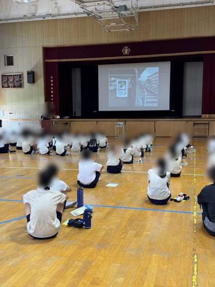 避難訓練から戻って来た後も、5,6年は講堂で区役所の方から防災についての話を聞きました。