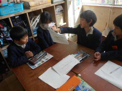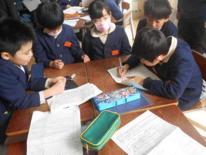 校長先生と教頭先生にお題をもらって、グループで協力してお話を作りました。