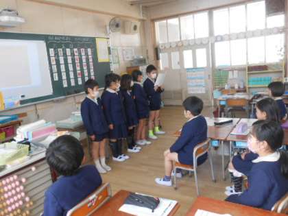 作ったお話をみんなの前で発表しました。
