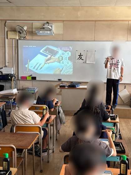 「友」という字の練習でしたが、筆の持ち方や一画一画の注意点などについて丁寧に確認しながら書いていました。