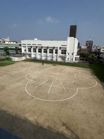 前日から、スタッフの方が運動場に線を引き、準備をしていました。