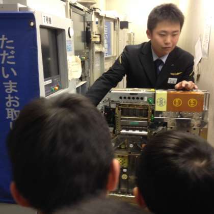 いつもは見ることのできない、券売機の裏側や、改札の内側を見学させていただきました。