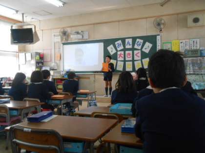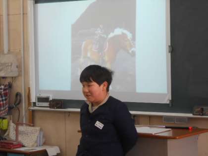 5年生はとっておきの写真を持ってきて、その時の思い出を発表しました。
