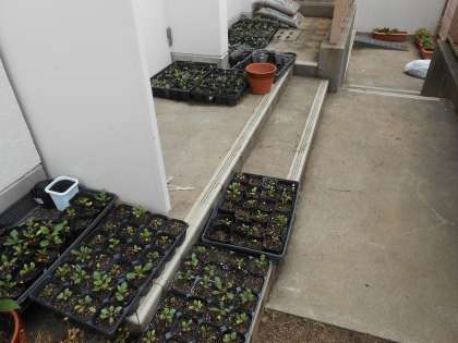 春先に咲いたパンジー、ビオラが花をつけなくなってきました。これから夏の花に植え替えなければなりません。感謝をこめてプランターを洗いました。そして、出番を待つ苗たちです。